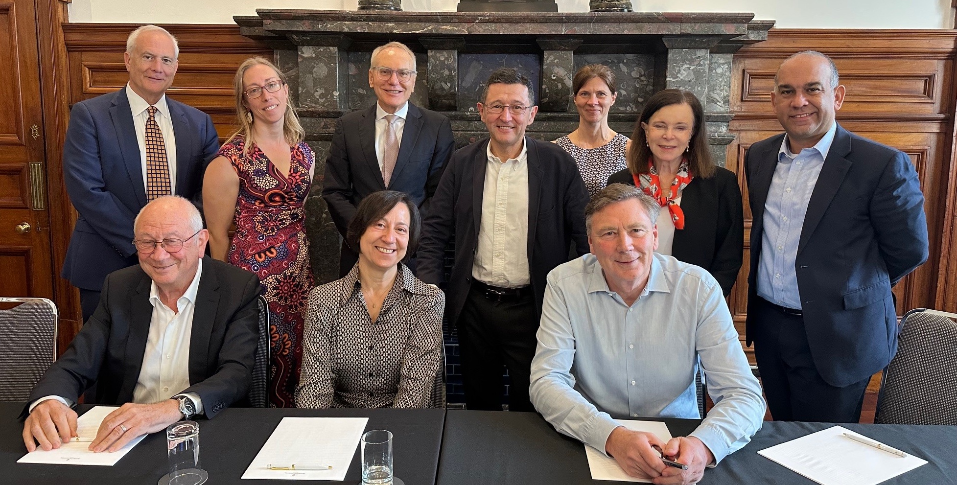 Pictured with GECN partners are Stephen Johns (front row, left), chair of Goodman Group; Antonia (Toni) Korsanos, vice chair of Light & Wonder and NED of Treasury Wine Estates; and David Thodey, chair of Xero Ltd. and Ramsay Health Care Ltd. Farient is a founding partner of GECN Group.